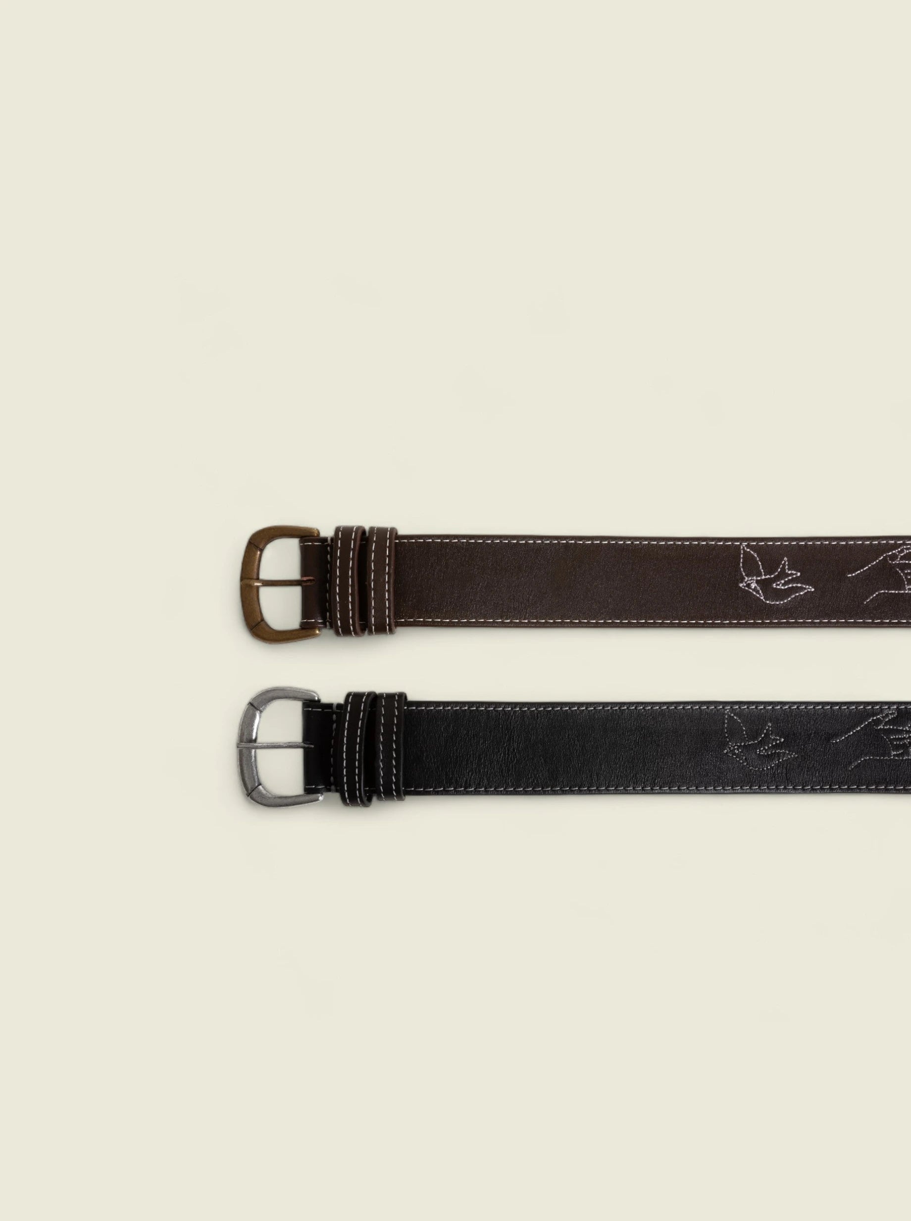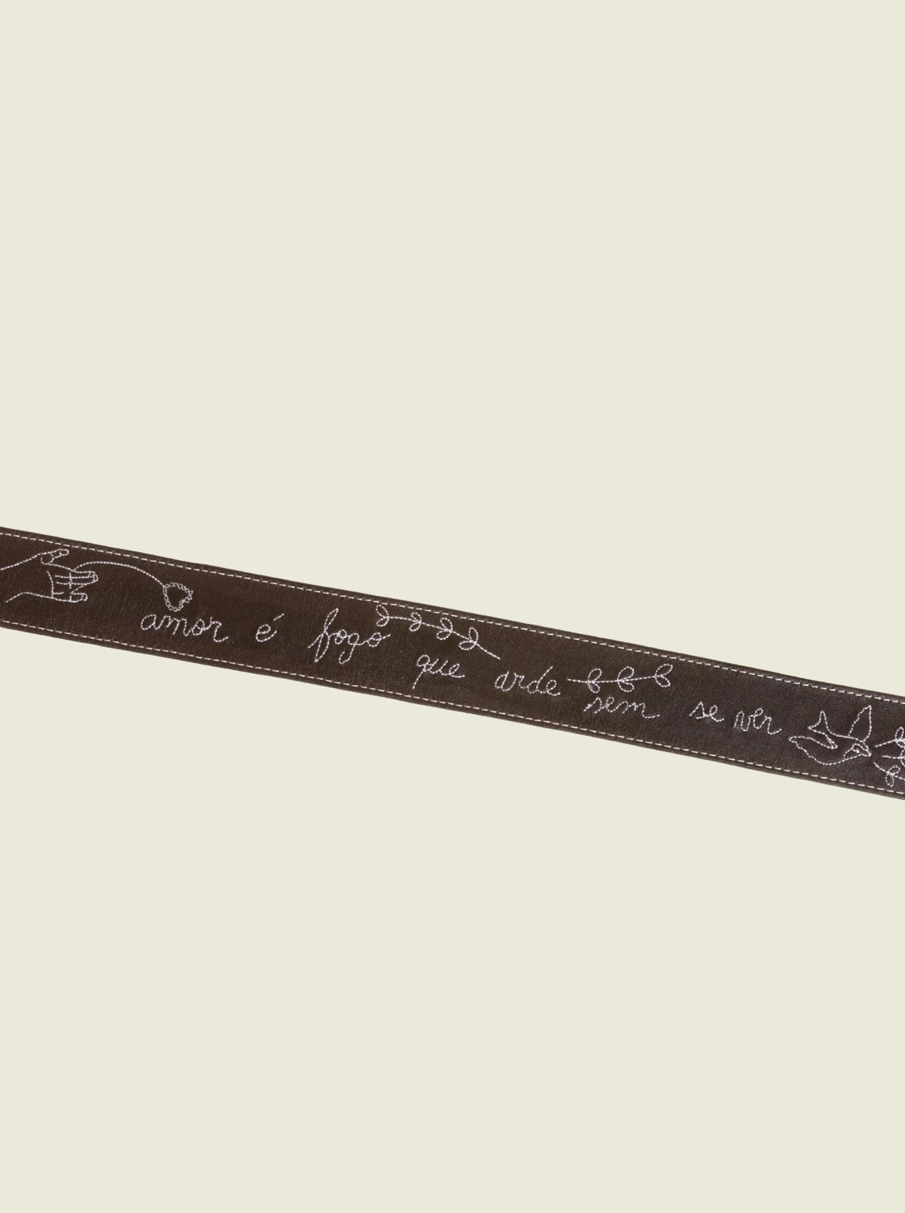 Ceinture en cuir de bovin brodée, ornée d’un motif exclusif imaginé par les grands-mères portugaises en collaboration avec SOCO.