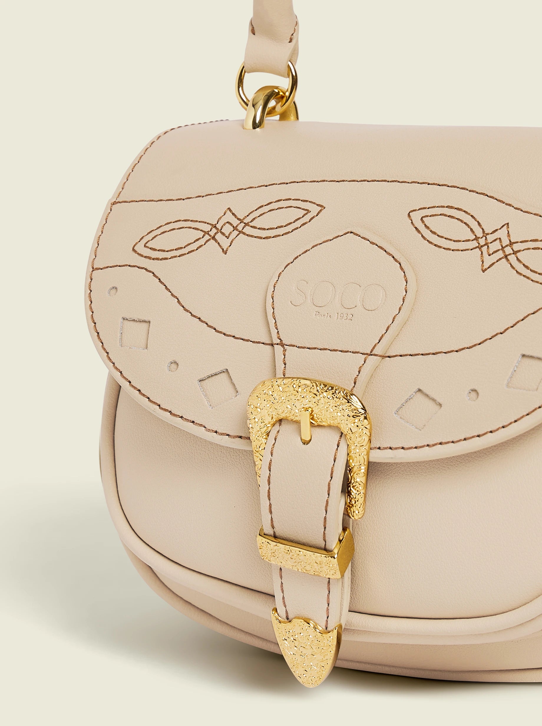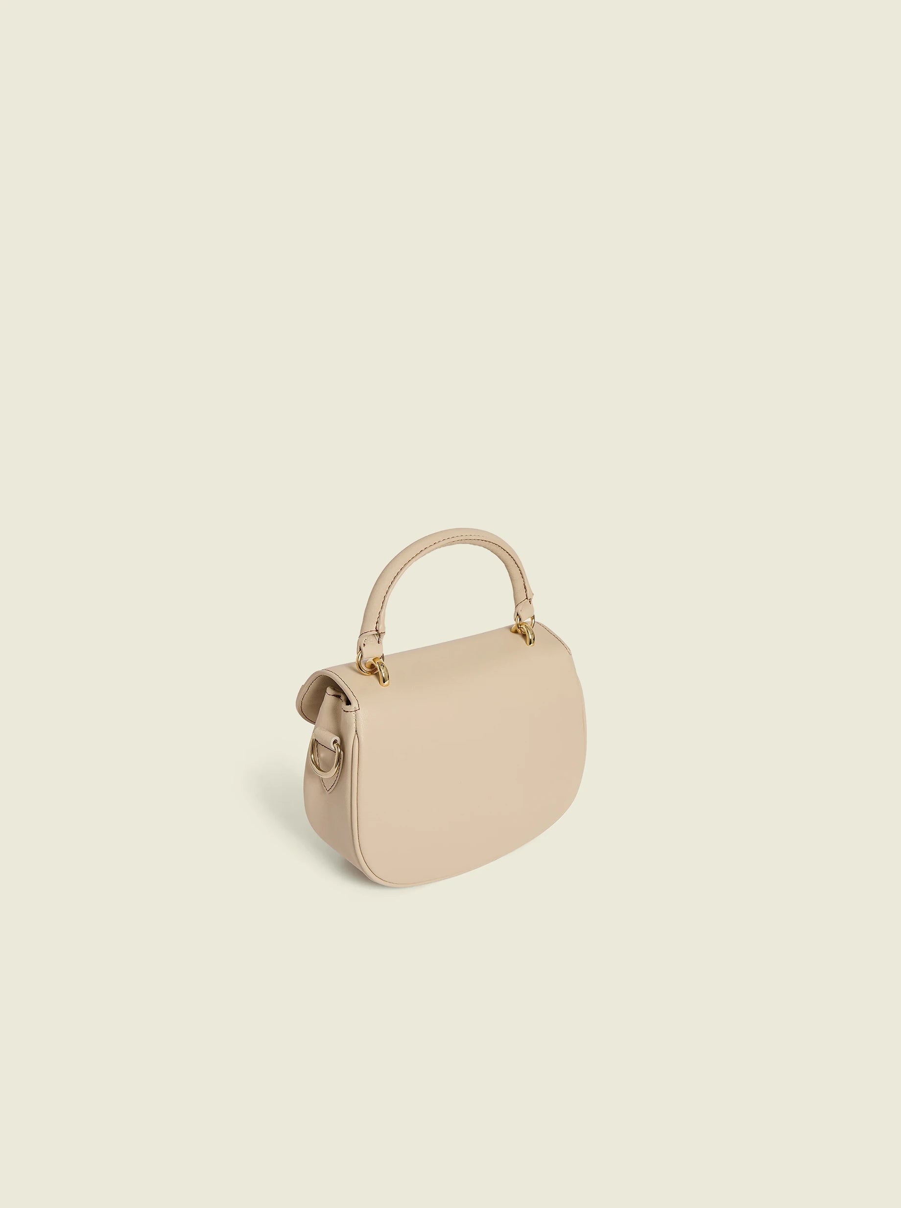 Ce sac besace en cuir lisse de bovin allie style et praticité avec ses trois options de porté : à la main grâce à sa poignée structurée, à l'épaule ou en bandoulière croisée grâce à sa sangle et sa chaîne amovibles.