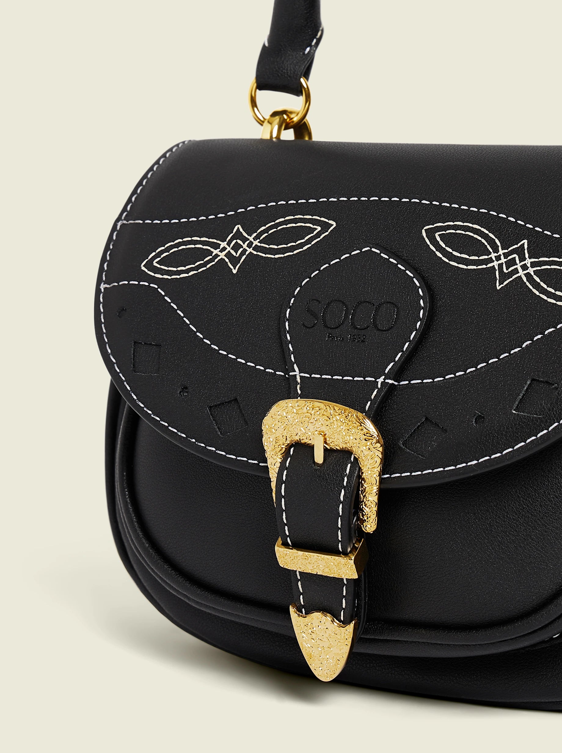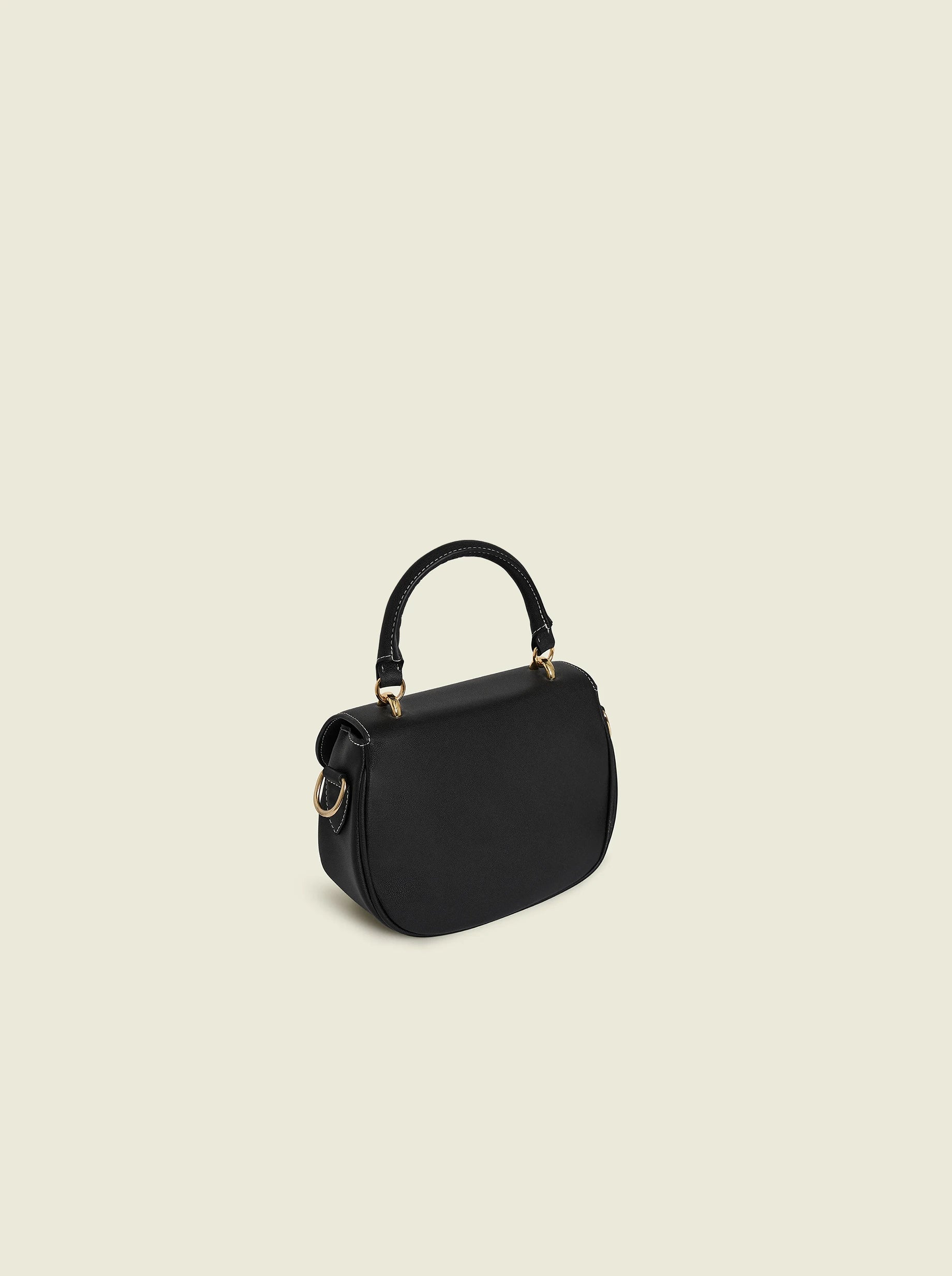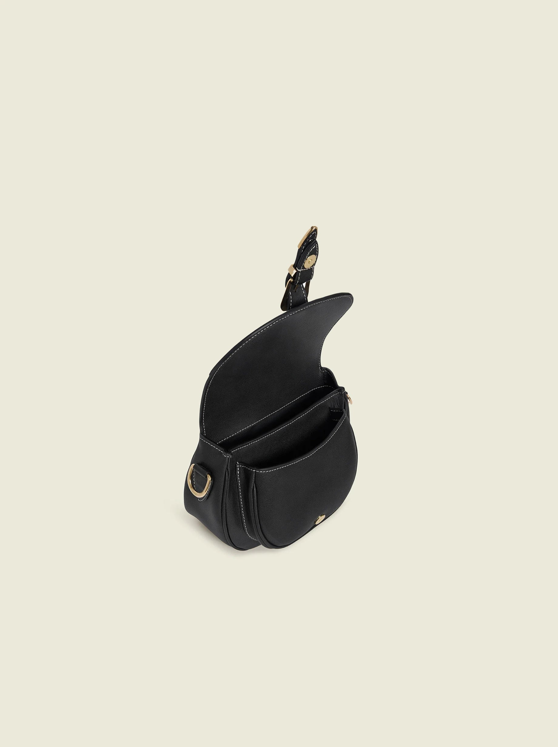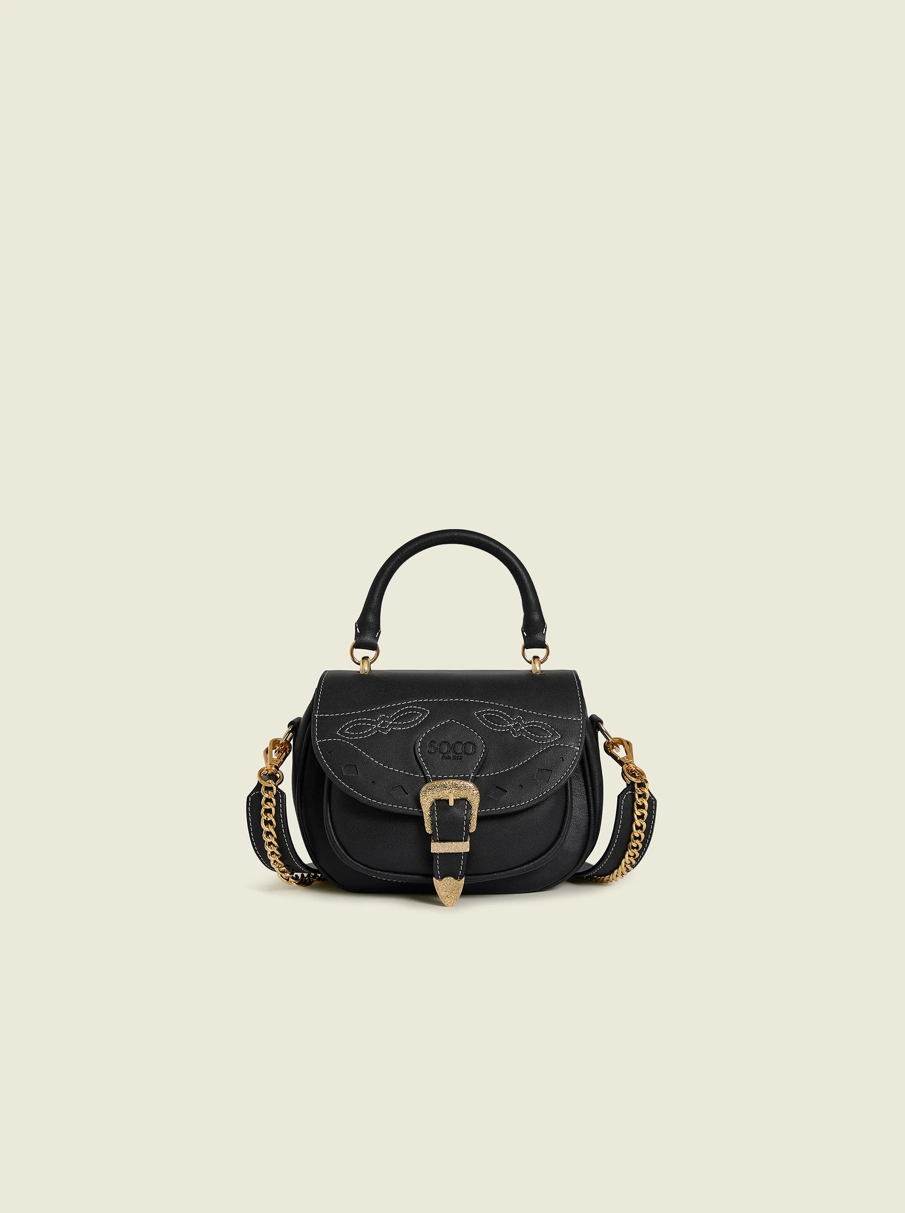 Ce sac besace en cuir lisse de bovin allie style et praticité avec ses trois options de porté : à la main grâce à sa poignée structurée, à l'épaule ou en bandoulière croisée grâce à sa sangle et sa chaîne amovibles.